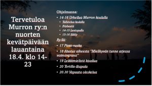 Olet sydämellisesti tervetullut Rauhanyhdistyksen tilaisuuksiin!