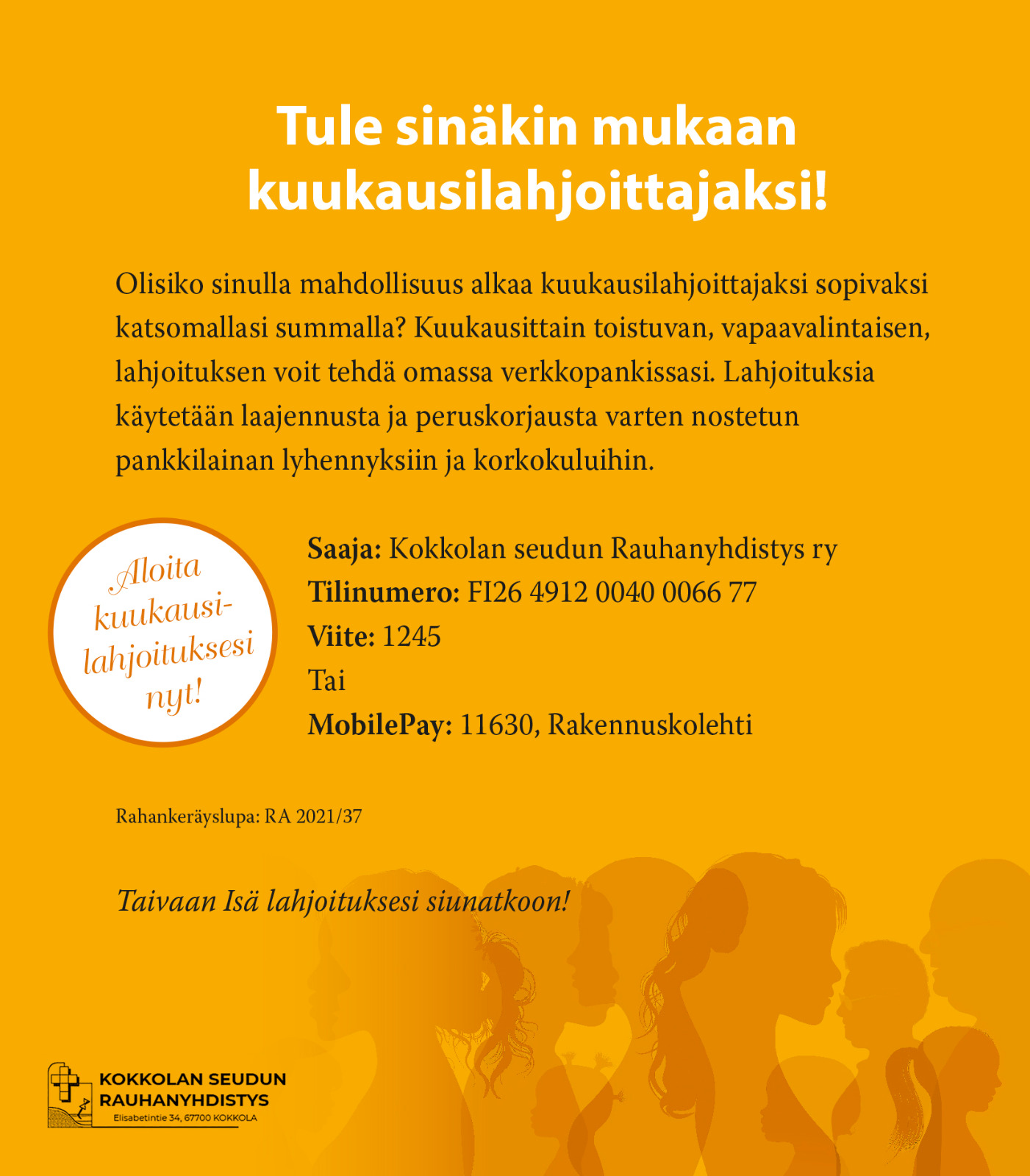 Kokkolan seudun Rauhanyhdistys ryn toimitaloa on mahdollista vuokrata […]